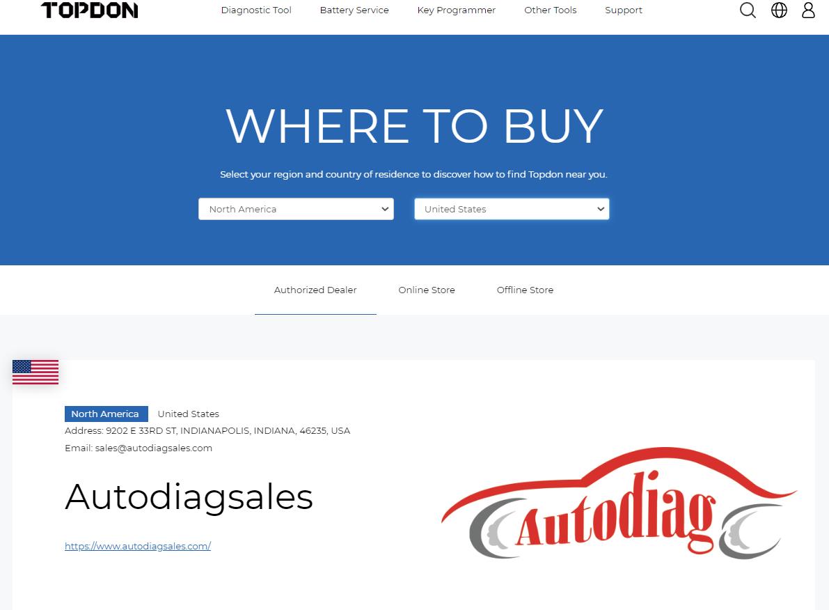 Enter www.topdon.com, click the authorized dealer at the bottom, you can find us
