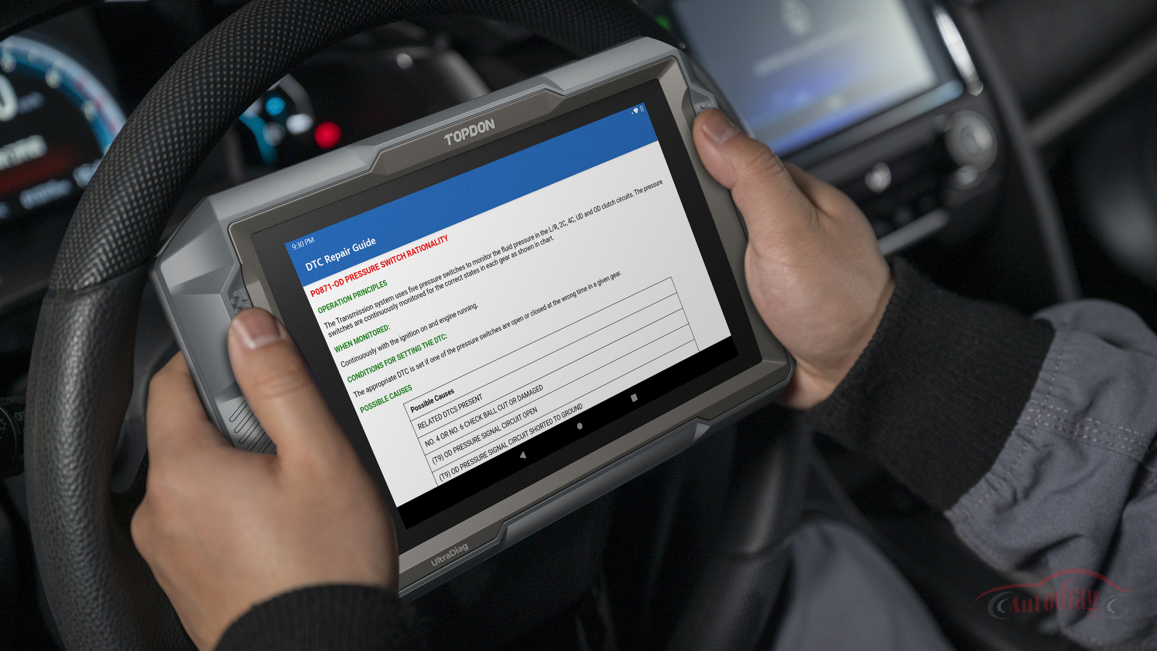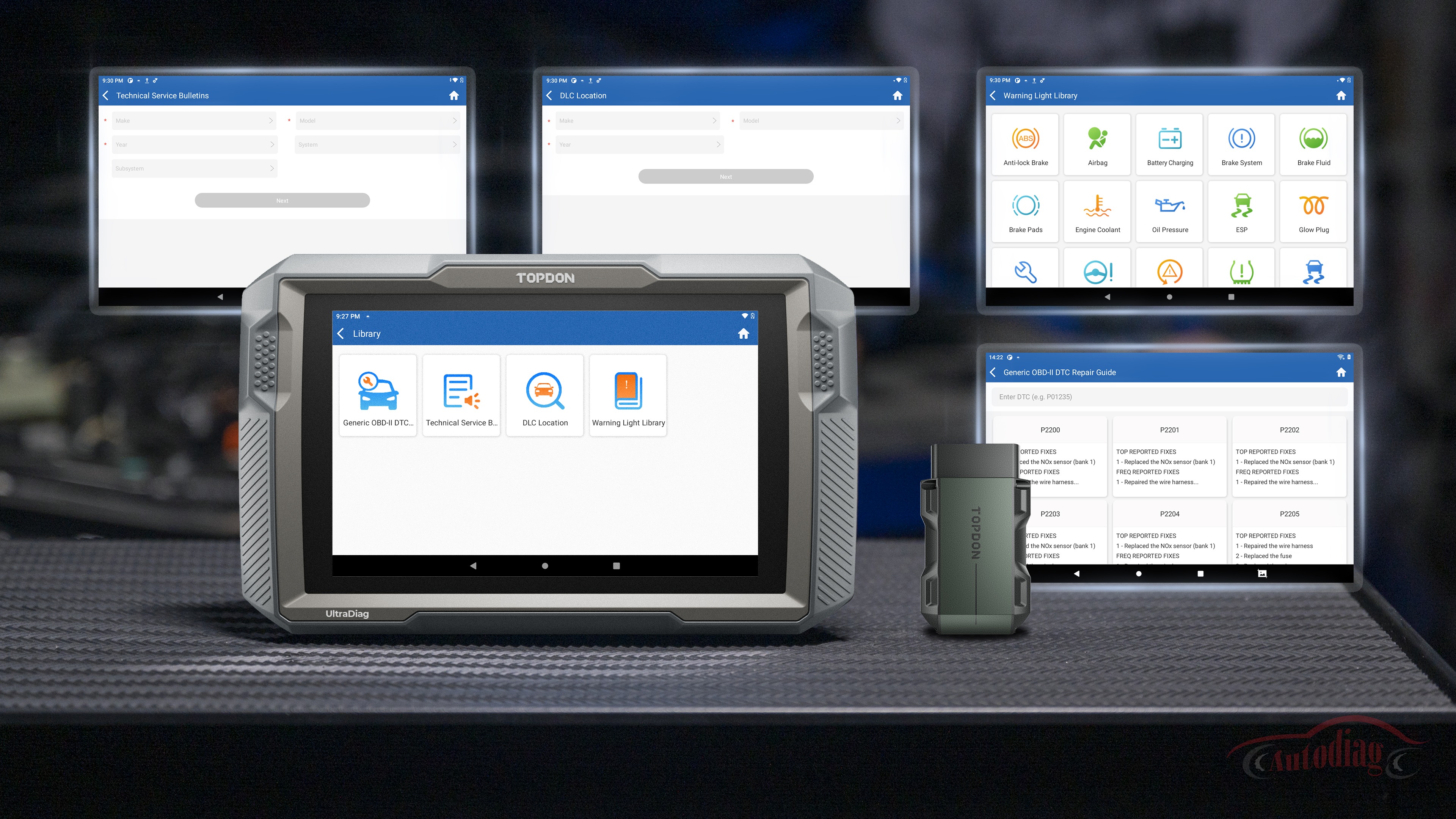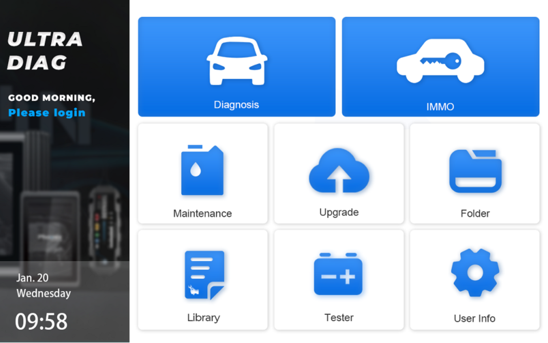The UltraDiag provides a comprehensive maintenance information library and a repair guide to help newer technicians familiarize themselves with vehicle diagnosis.